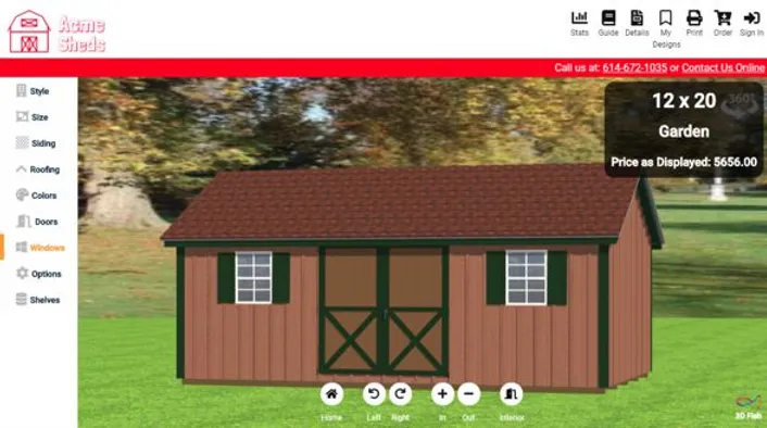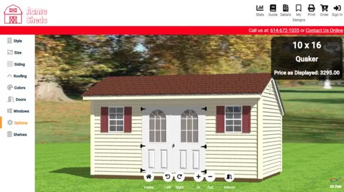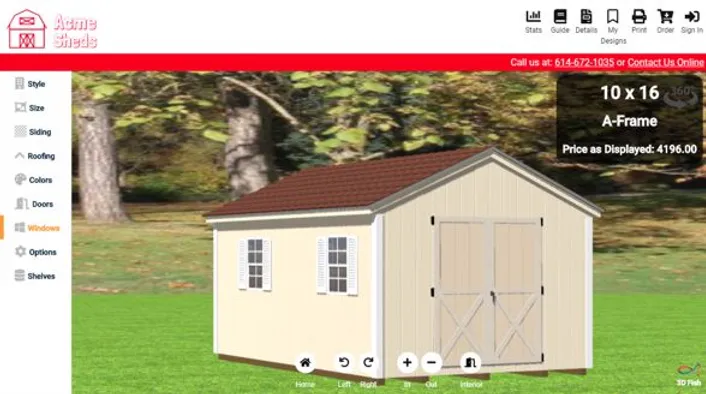 Our flagship product, the 3D Shed Designer lets your customers visualize the shed they would like to purchase, giving them the oportunity to select the style, the size, the siding, the colors and the placing of the doors, windows and other accessories exactly where they want them to be, both inside and outside of the building.
