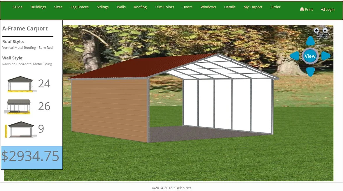 We are in the process of rolling out our Carport Designer. Please ask about availability.